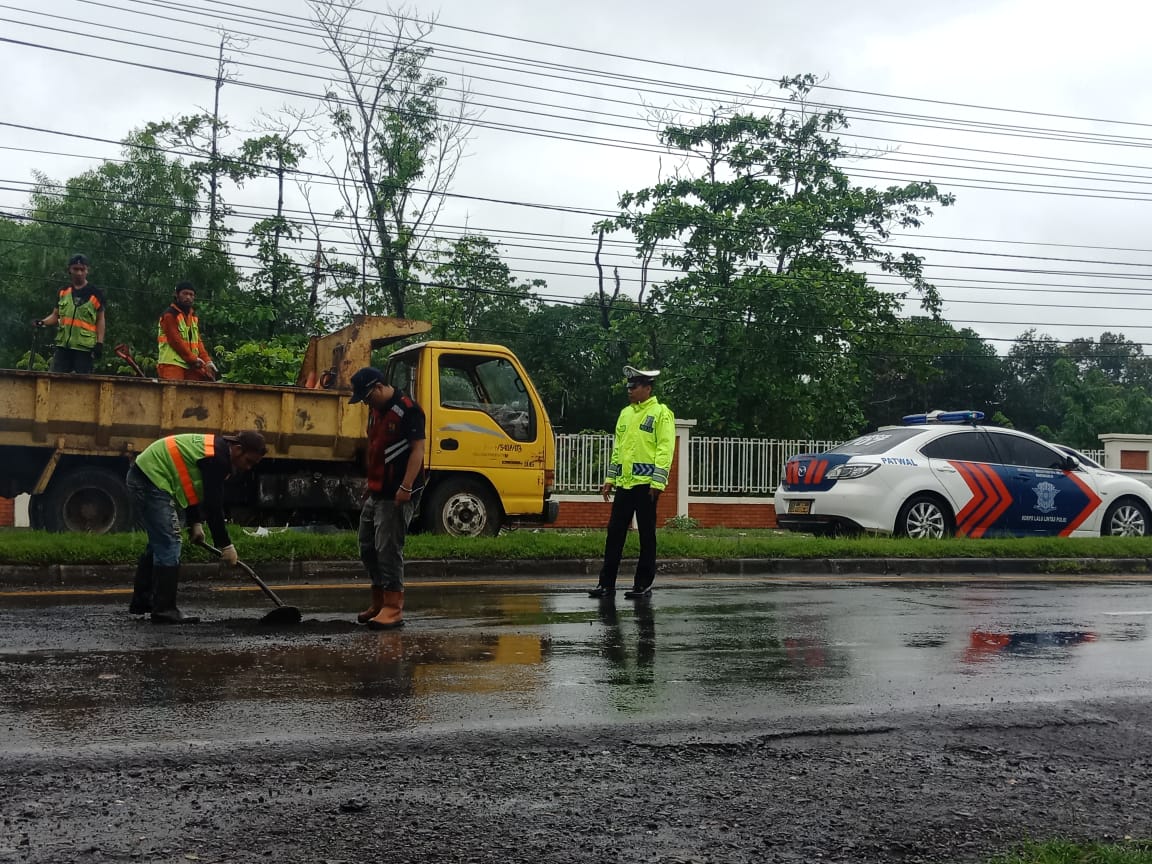 “Kami antisipasi gangguan kamseltibcar lantas yang rawan menimbulkan kecelakaan terutama bagi pengendara sepeda motor dan perlambatan arus lalu lintas akibat jalan yang berlubang,apa lagi akhir-akhir ini cuaca nya agak ekstrim. ” Ucap AKP Amalia