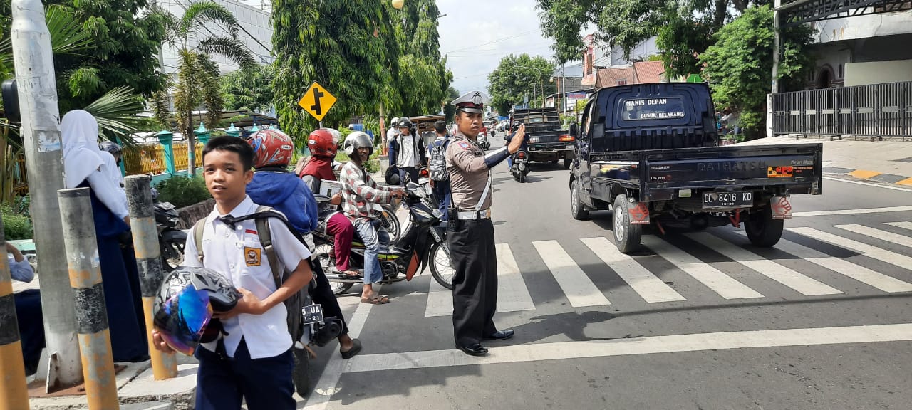 “Hal tersebut bertujuan untuk membantu anak-anak sekolah menyeberang jalan, mengingat jumlah kendaraan sangat padat utamanya pada saat jam pulang sekolah.” Ucap Ipda Herman