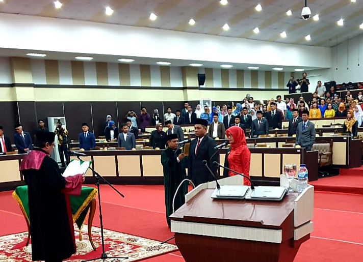 Pengucapan sumpah jabatan kedua anggota DPRD Sulsel tersebut dipandu langsung oleh Kepala Pengadilan Tinggi (Kapengti) Kota Makassar Syarian Sidik yang selanjutnya dilakukan penyematan pin kepada kedua legislator Sulsel tersebut.