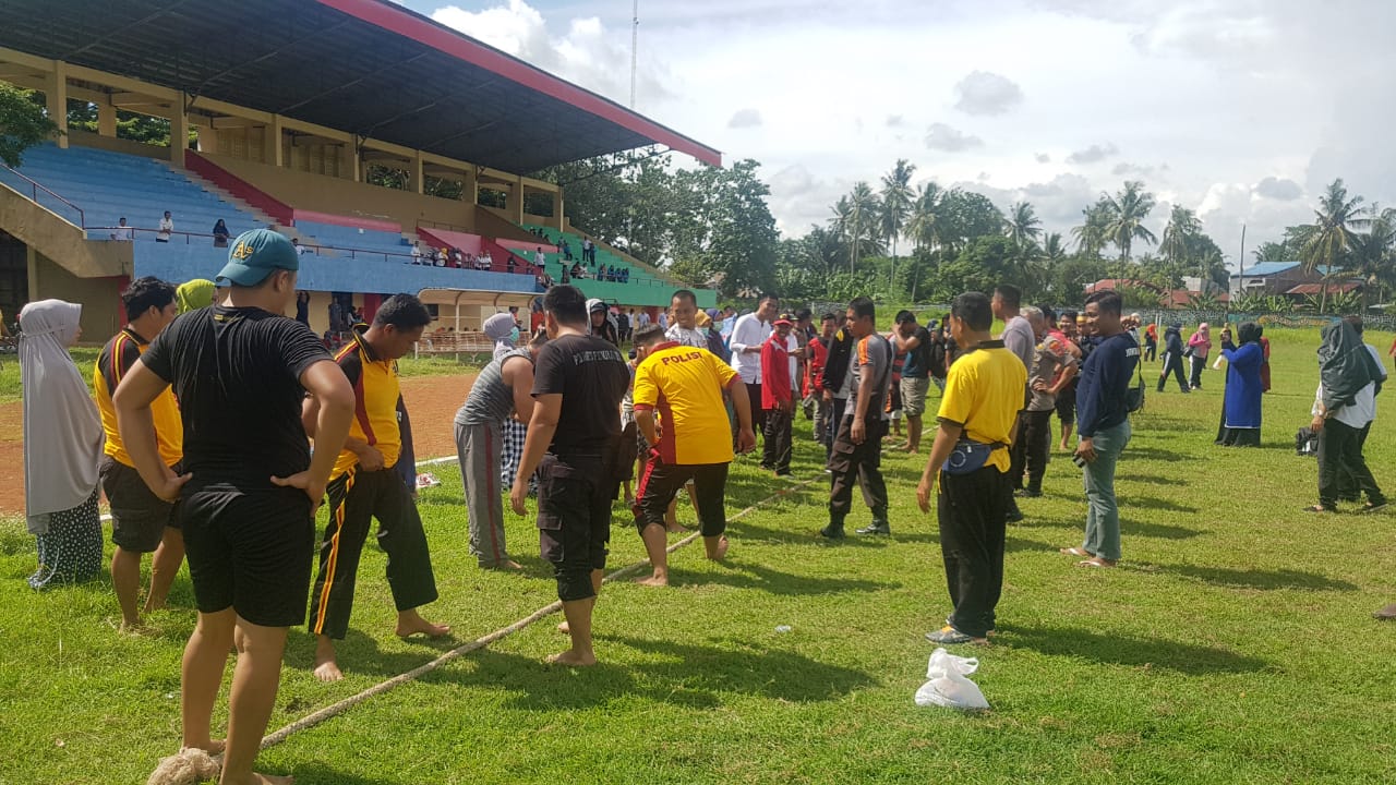 Kapolres Pinrang AKBP Bambang Suharyono, S.IK, MH, mengucapkan selamat kepada tim tarik tambang Polres Pinrang atas keberhasilannya menjadi juara 1 se – Kabupaten Pinrang.