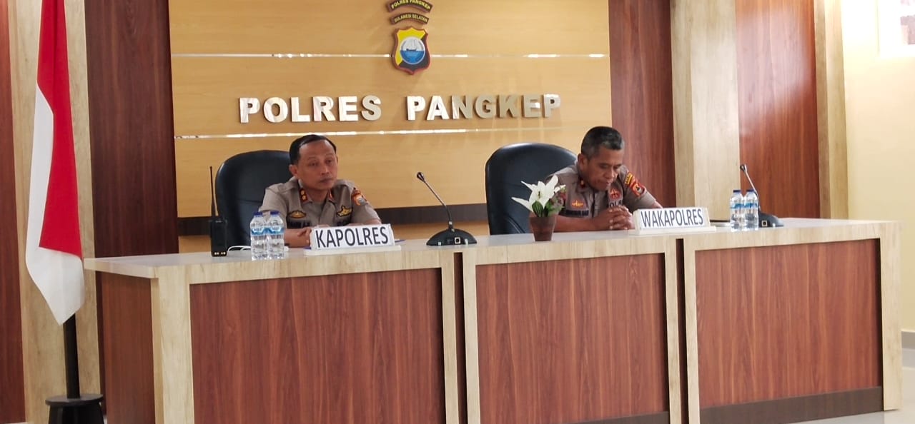 Wargata.com, Pangkep,- Bahas persiapan pengamanan pelaksanaan HUT Kabupaten Pangkep ke-60, Kapolres Pangkep AKBP Ibrahim Aji memimpin langsung rakor kesiapan pengamanan di Mapolres Pangkep, Kamis (20/2/2020).