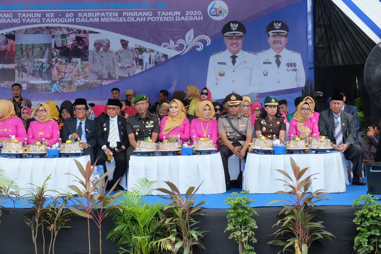 Wargata.com,Pinrang – Kapolres Pinrang AKBP Dwi Santoso, S.IK, MH bersama Personel Polres Pinrang dan Bhayangkari Cabang Pinrang hadiri langsung puncak acara Hari Ulang Tahun Kabupaten Pinrang ke 60 tahun 2020 yang dilaksanakan di halaman kantor Bupati Pinrang. (19/2/2020)