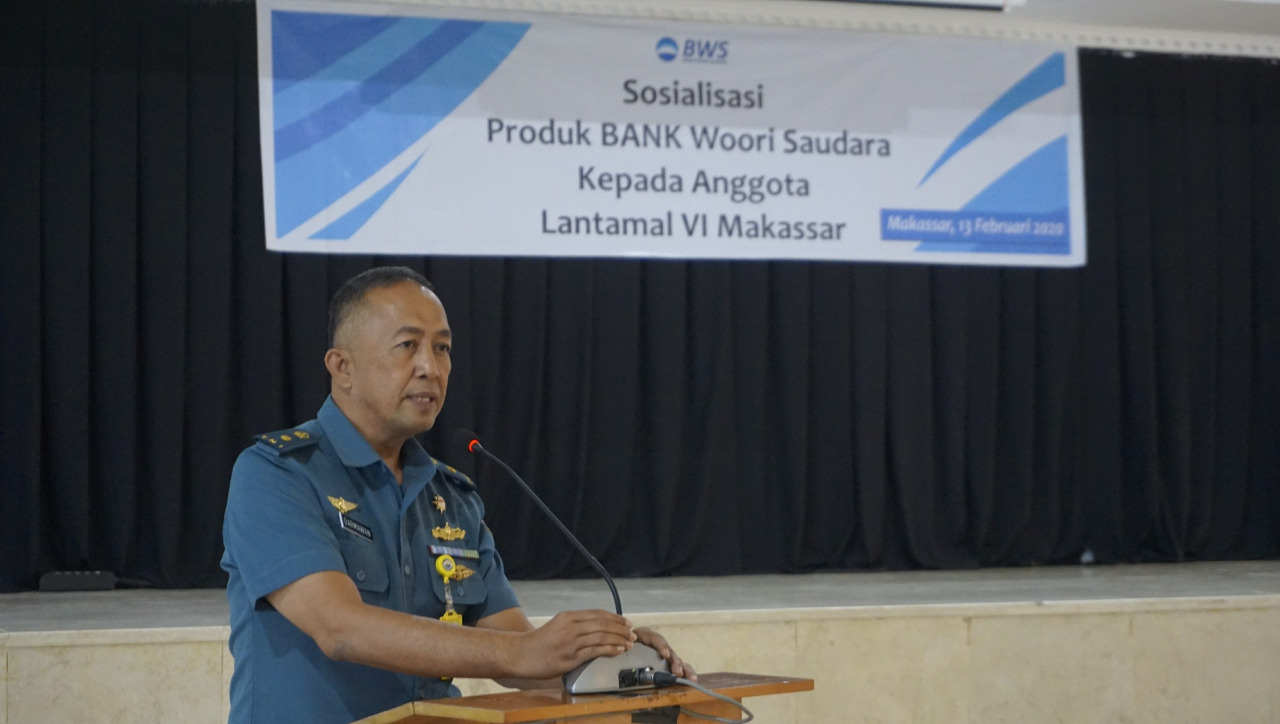 Wargata.com, Makassar – Bank Woori Saudara (BWS) Kantor Cabang (KC) Makassar mengadakan Sosialisasi Produk dihadapan para Prajurit dan Pegawai Negeri Sipil (PNS) Lantamal VI bertempat di Gedung Sultan Hasanuddin Mako Lantamal VI, Kamis (13/02/2020).