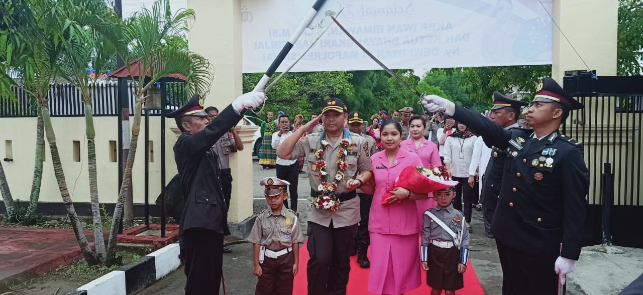 Dengan didampingi oleh AKBP Sebpril Sesa, S.IK., yang merupakan Pejabat Kapolres Sinjai sebelumnya, AKBP Iwan Irmawan, SIK, M.Si beserta Ny.Dewi Iwan berjalan dibawah pedang para Perwira Polres Sinjai yang membentuk gerbang pora menuju lobby Polres Sinjai.