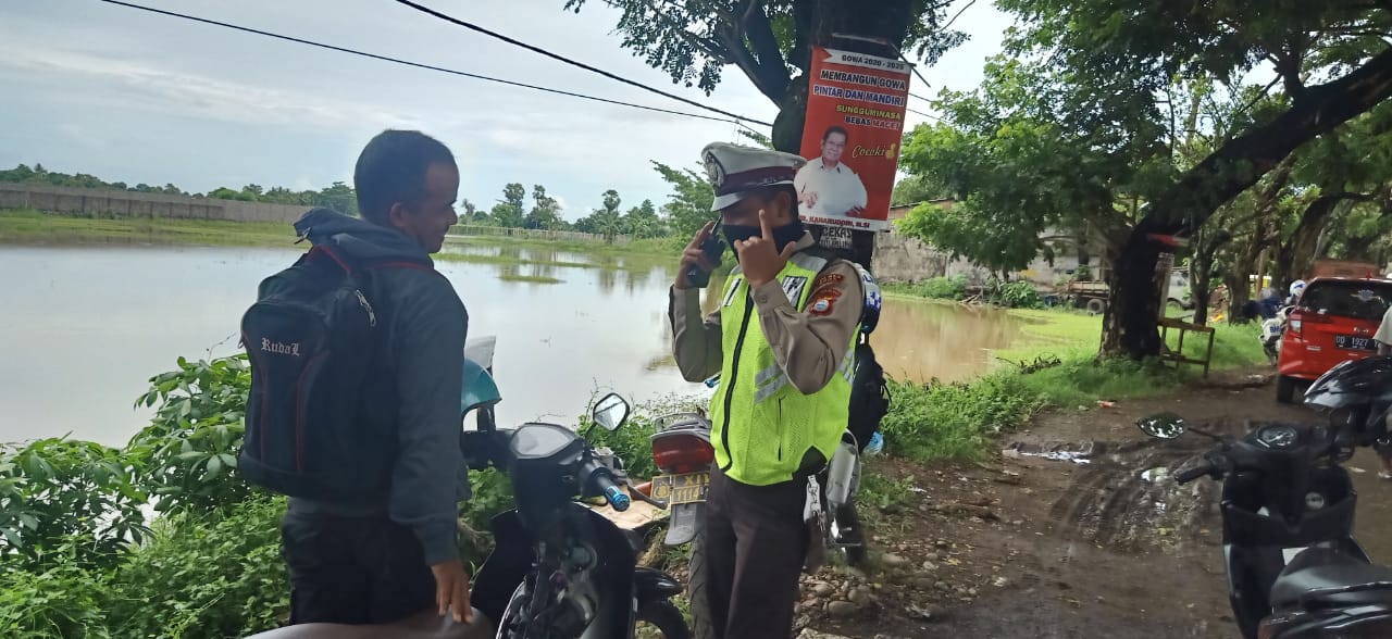 Wargata.com, Sulsel – Sebagai upaya untuk menciptakan Sitkamseltibcar lantas dan menekan jumlah Laka Lantas diwilayah hukum Polres Gowa, Bripka Nirsan personil sat lantas polres Gowa menegur pengendara Roda dua (R2) alias sepeda motor karena kedapatan menggunakan headset saat berkendara di jalan poros pallangga Kecamatan Pallangga Kabupaten gowa Minggu (09/02/20)