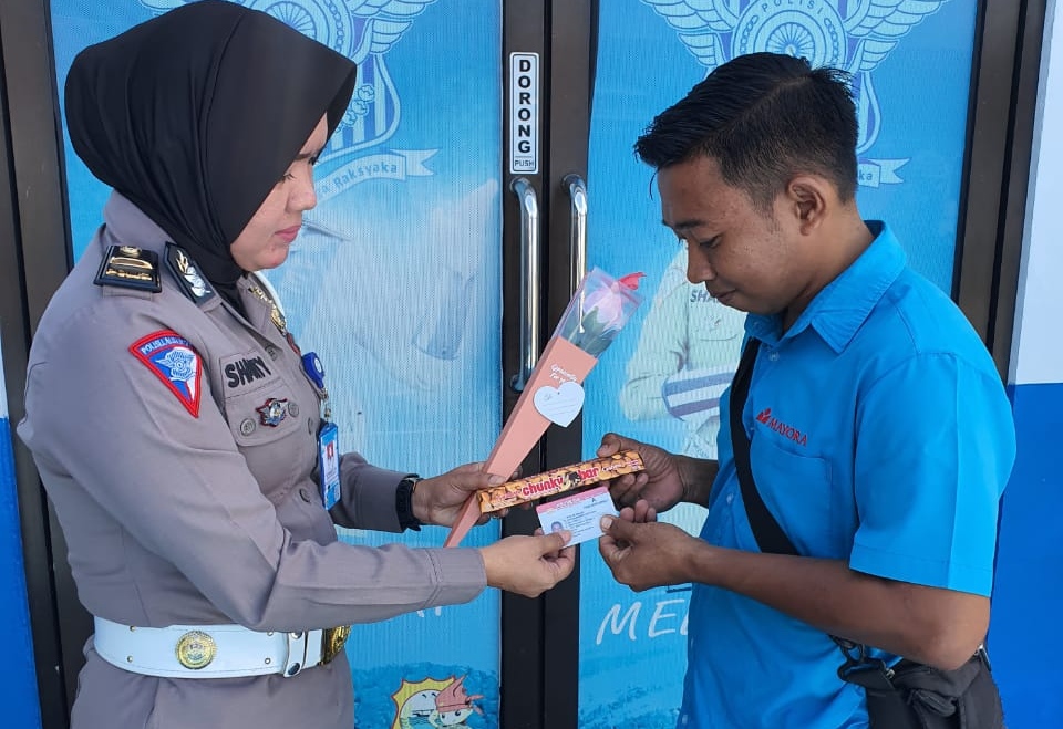 “Kami memberikan bunga dan coklat kepada para pemohon dalam rangka Hari Valentine, sekaligus sebagai bentuk ungkapan terima kasih kepada mereka yang telah membuat SIM,” jelas Ipda Nursanti.