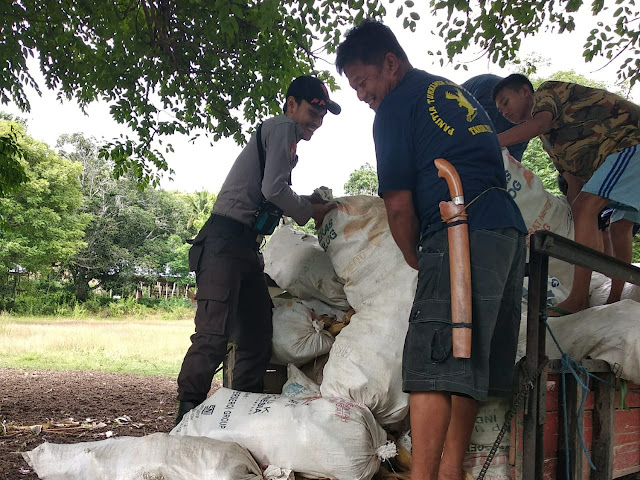”Saling tolong-menolong sesama manusia itu sudah sewajarnya kita lakukan, apalagi di desa ini sudah saya anggap sebagai keluarga saya sendiri ” ujar Briptu Firman sambil mengangkat jagung.