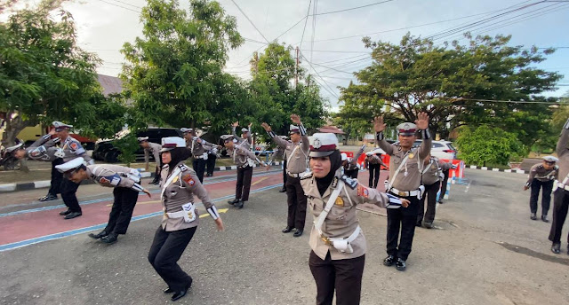Usai Apel Pagi, Personil Satlantas Polres Pinrang Melaksanakan Senam AW S3