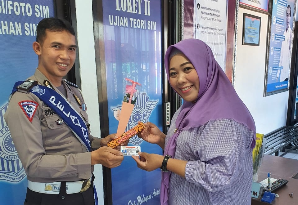 “Kami memberikan bunga dan coklat kepada para pemohon dalam rangka Hari Valentine, sekaligus sebagai bentuk ungkapan terima kasih kepada mereka yang telah membuat SIM,” jelas Ipda Nursanti.
